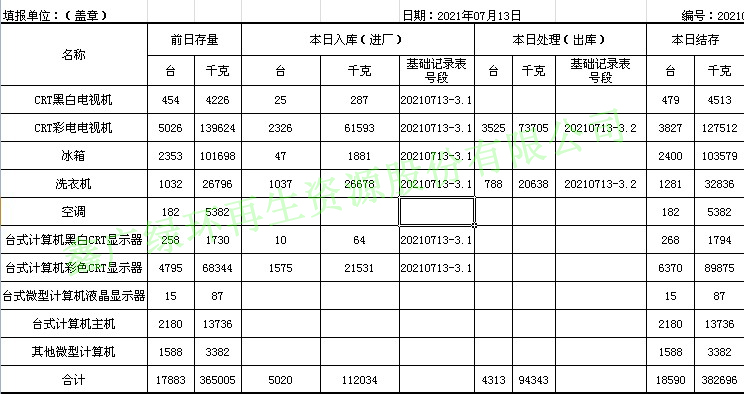 2021.07.13回收拆解統(tǒng)計表