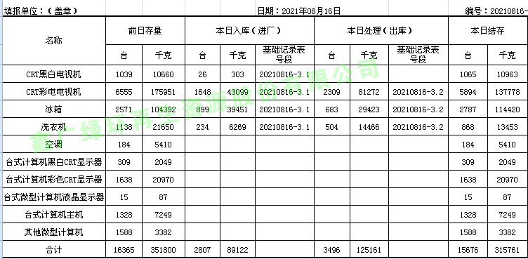 2021.08.16回收拆解統(tǒng)計(jì)表