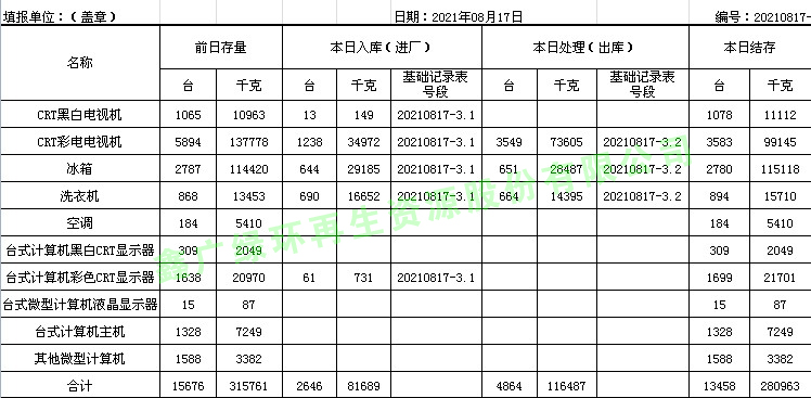 2021.08.17回收拆解統(tǒng)計(jì)表