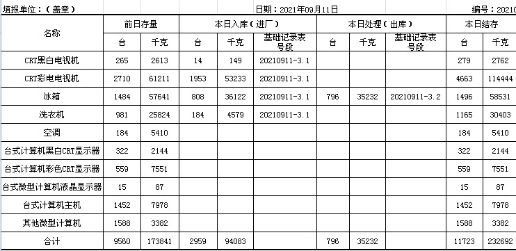2021.09.11回收拆解統(tǒng)計(jì)表