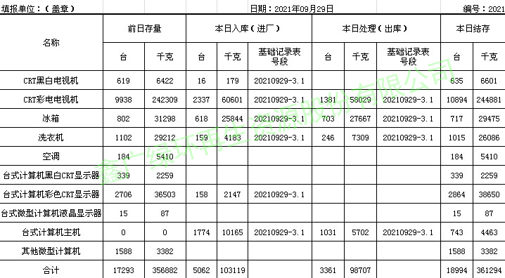 2021.09.29回收拆解統(tǒng)計(jì)表