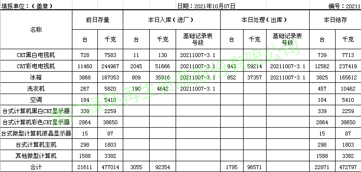 2021.10.07回收拆解統(tǒng)計(jì)表