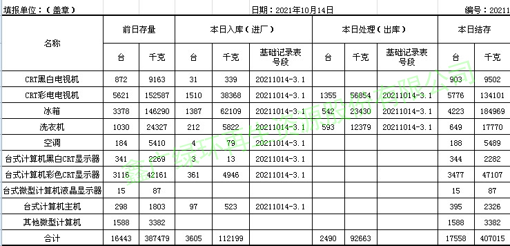 2021.10.14回收拆解統(tǒng)計表