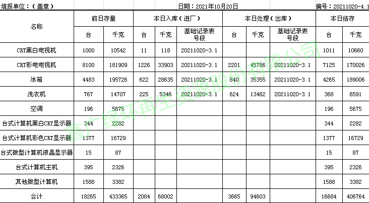 2021.10.20回收拆解統(tǒng)計(jì)表