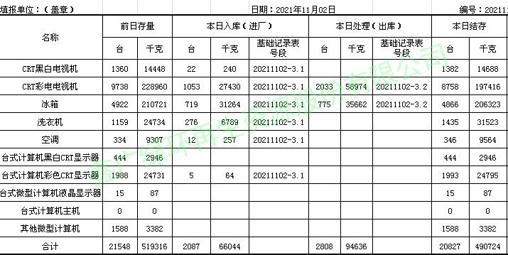 2021.11.02回收拆解統(tǒng)計(jì)表
