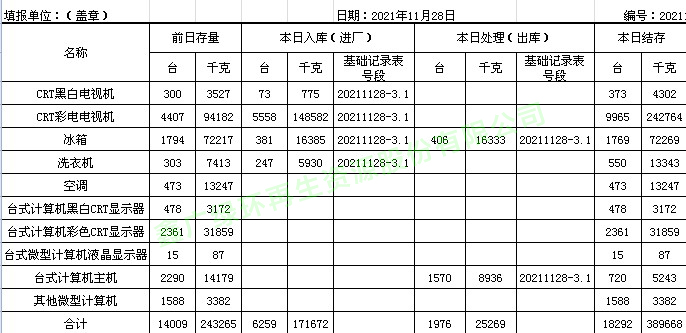 2021.11.28回收拆解統(tǒng)計(jì)表