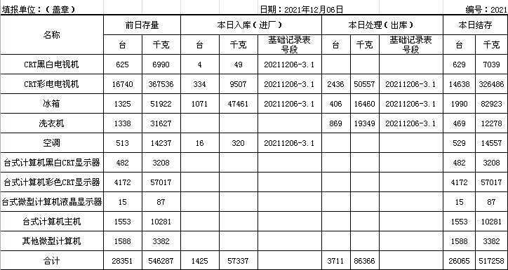 2021.12.06回收拆解統(tǒng)計表