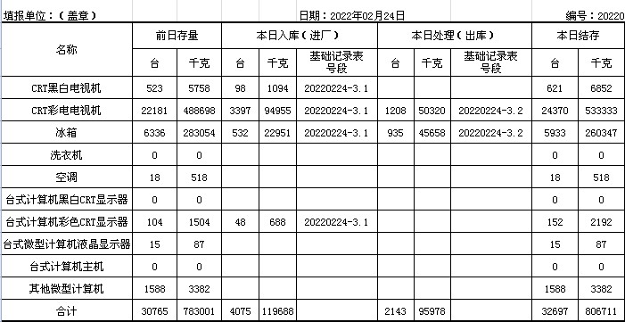 2022.02.24回收拆解統(tǒng)計(jì)表