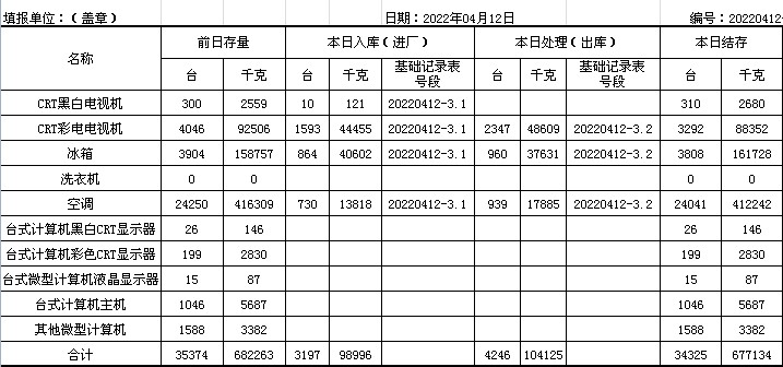 2022.04.12回收拆解統(tǒng)計(jì)表