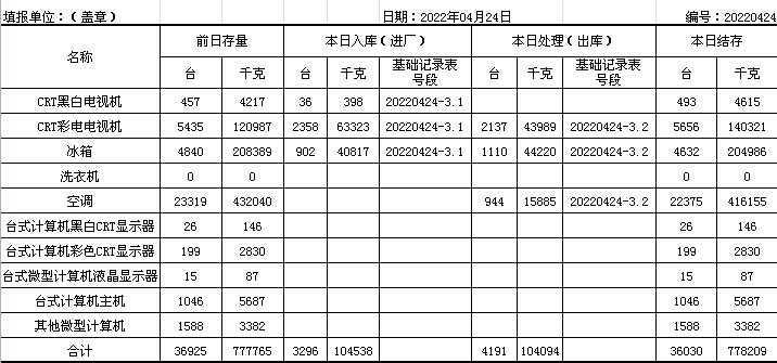 2022.04.24回收拆解統(tǒng)計(jì)表