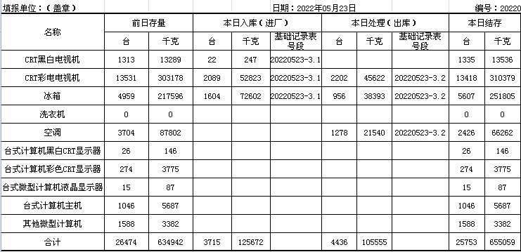 2022.05.23回收拆解統(tǒng)計(jì)表
