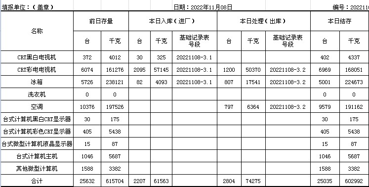 2022.11.08回收拆解統(tǒng)計(jì)表