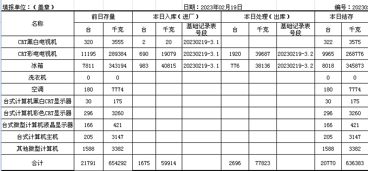 2023.02.19回收拆解統(tǒng)計(jì)表
