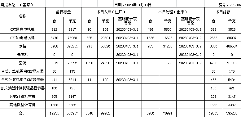 2023.04.03回收拆解統(tǒng)計表