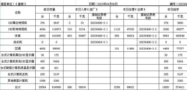 2023.04.06回收拆解統(tǒng)計(jì)表