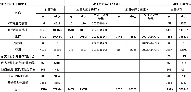 2023.04.14回收拆解統(tǒng)計(jì)表