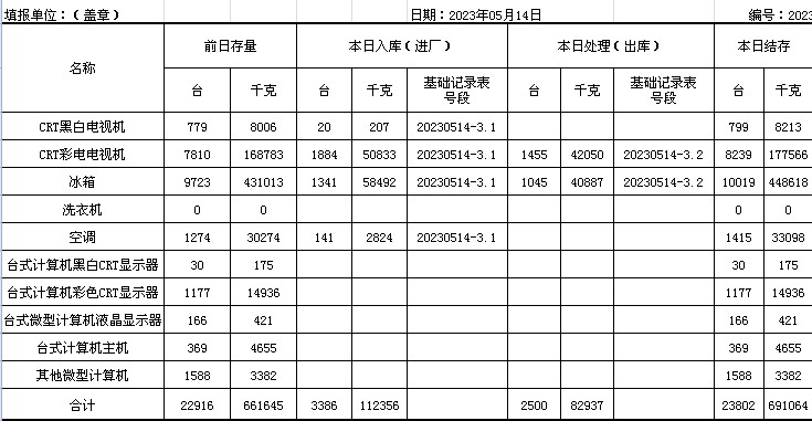 2023.05.14回收拆解統(tǒng)計表