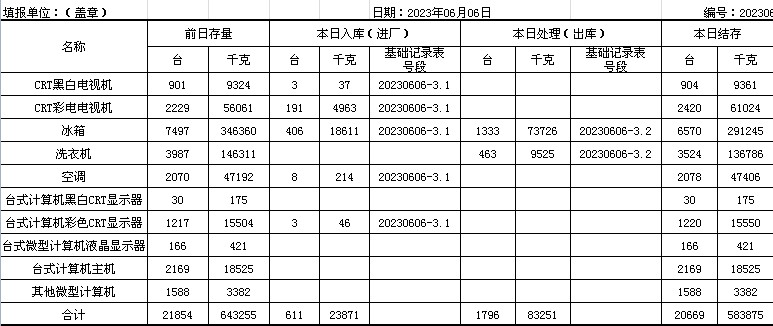2023.06.06回收拆解統(tǒng)計(jì)表