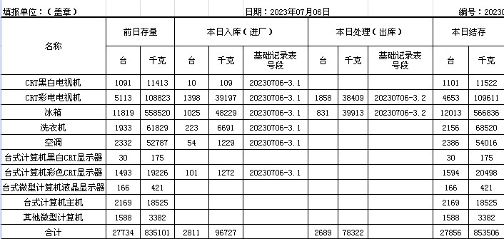 2023.07.06回收拆解統(tǒng)計表
