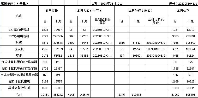 2023.08.10回收拆解統(tǒng)計(jì)表