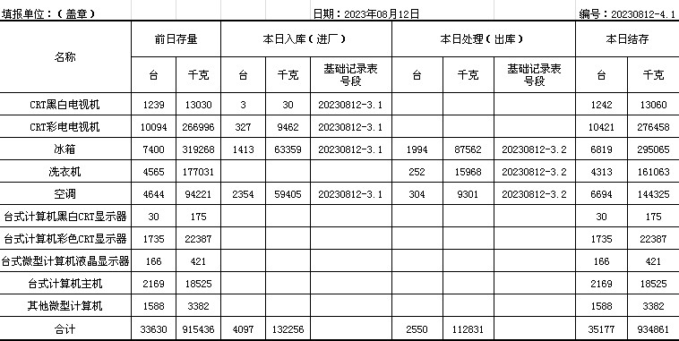 2023.08.12回收拆解統(tǒng)計(jì)表