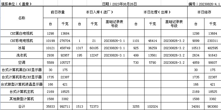 2023.08.26回收拆解統(tǒng)計表