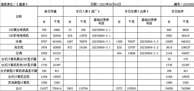2023.09.04回收拆解統(tǒng)計(jì)表