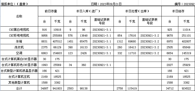 2023.09.21回收拆解統(tǒng)計(jì)表