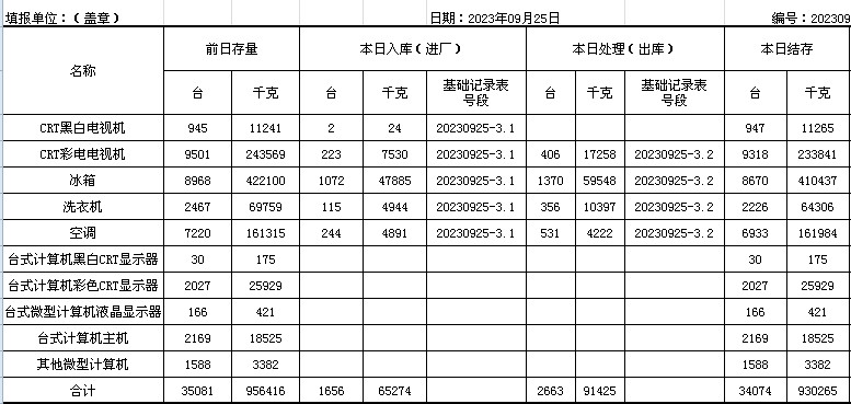 2023.09.25回收拆解統(tǒng)計(jì)表