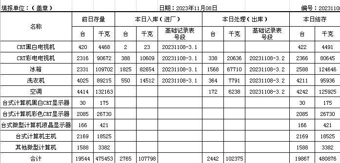 2023.11.08回收拆解統(tǒng)計表