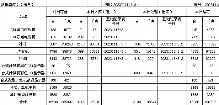 2023.11.18回收拆解統(tǒng)計(jì)表