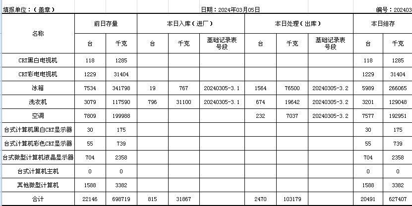 2024.03.05回收拆解統(tǒng)計表