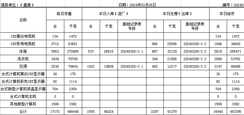 2024.03.26回收拆解統(tǒng)計(jì)表