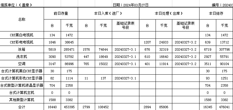 2024.03.27回收拆解統(tǒng)計(jì)表