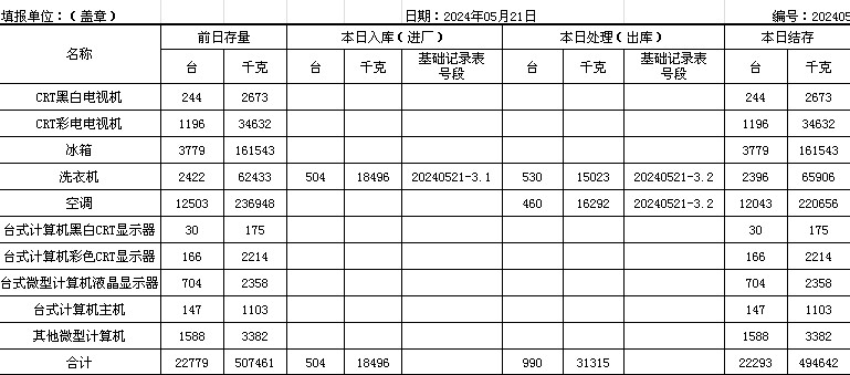 2024.05.21回收拆解統(tǒng)計(jì)表