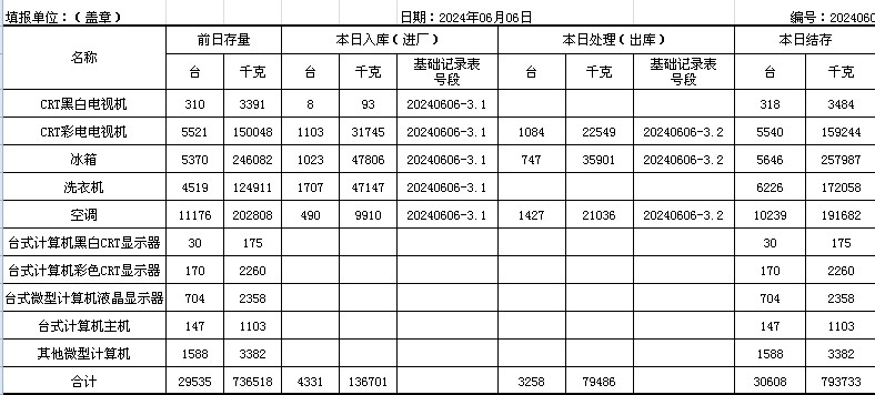 2024.06.06回收拆解統(tǒng)計(jì)表