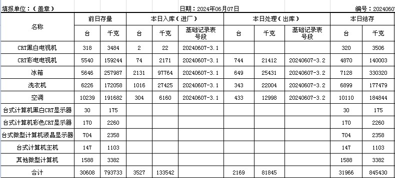 2024.06.07回收拆解統(tǒng)計(jì)表