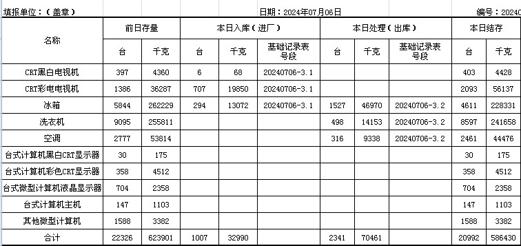 2024.07.06回收拆解統(tǒng)計表