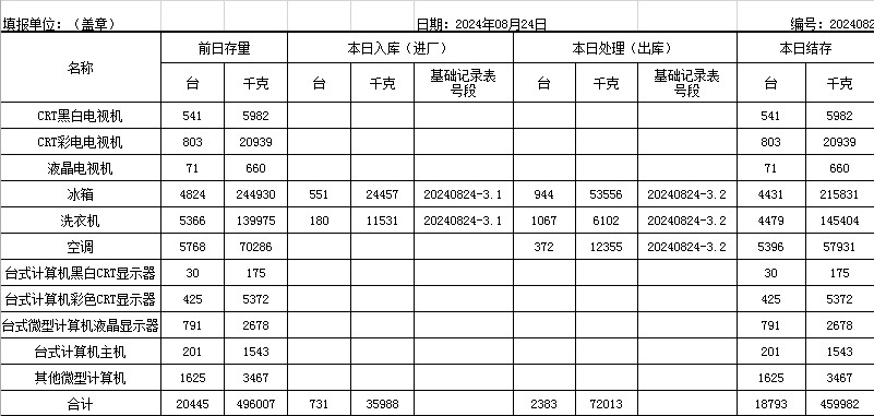 2024.08.24回收拆解統(tǒng)計(jì)表