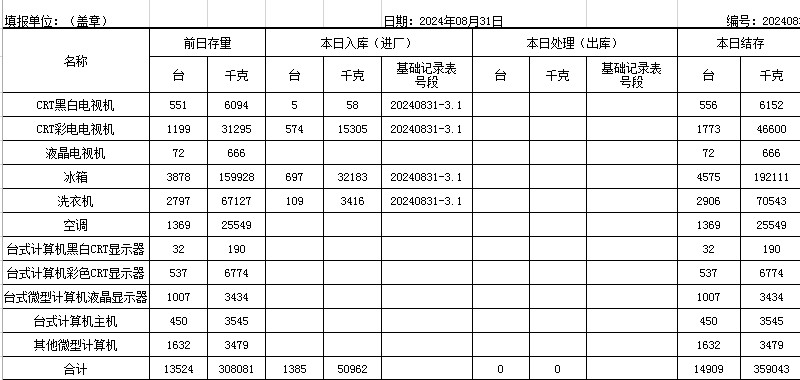 2024.08.31回收拆解統(tǒng)計表