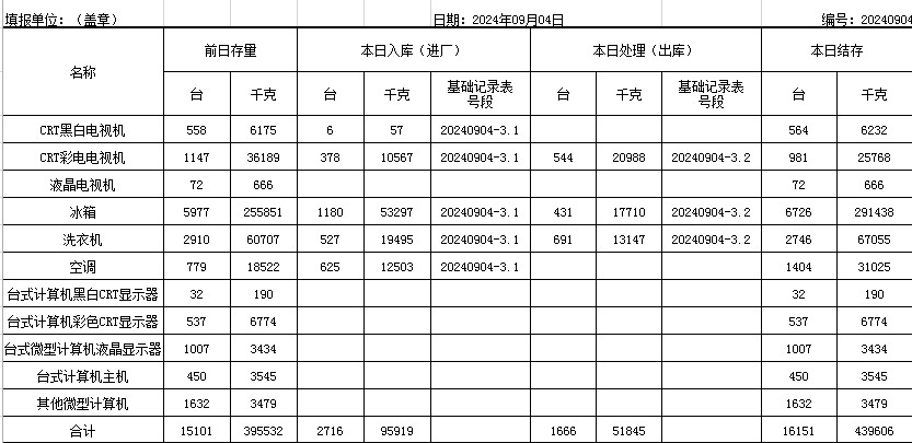 2024.09.04回收拆解統(tǒng)計表