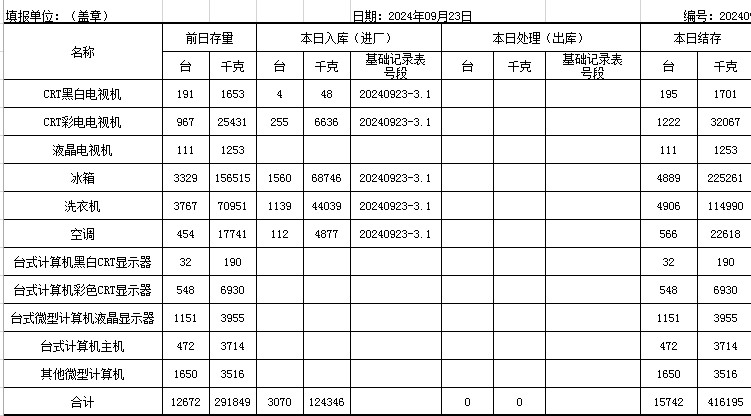 2024.09.23回收拆解統(tǒng)計(jì)表
