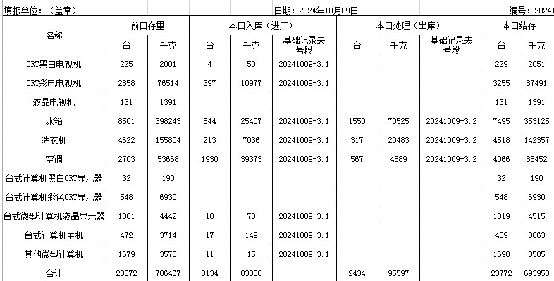 2024.10.09回收拆解統(tǒng)計(jì)表