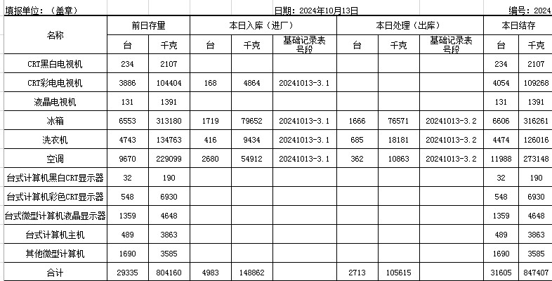 2024.10.13回收拆解統(tǒng)計(jì)表