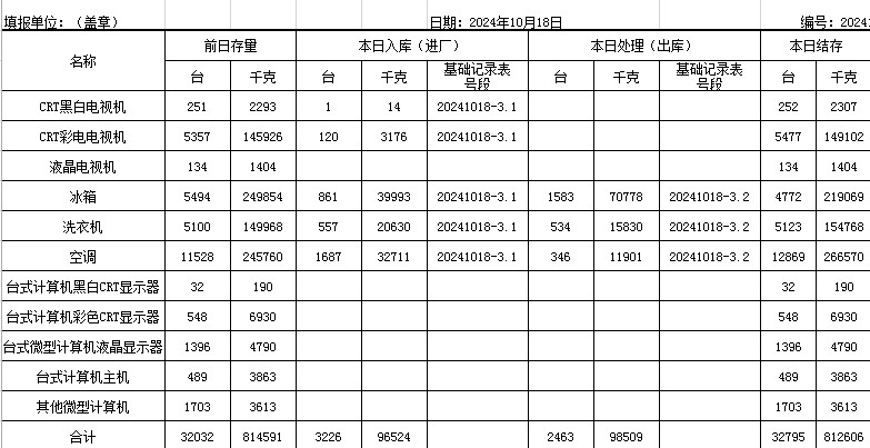 2024.10.18回收拆解統(tǒng)計(jì)表