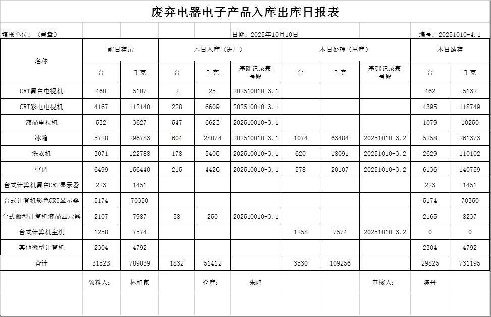 2025.10.11回收拆解統(tǒng)計(jì)表