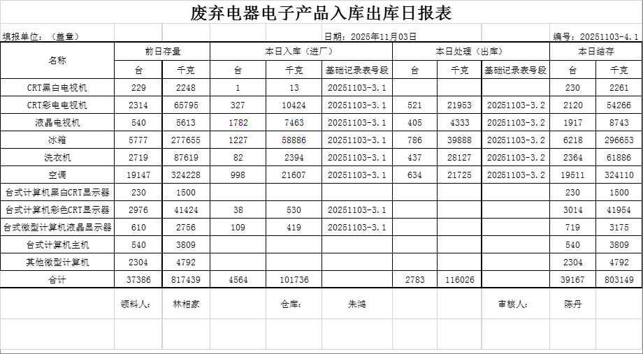 2025.11.03回收拆解統(tǒng)計(jì)表