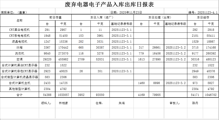 2025.11.24回收拆解統(tǒng)計表