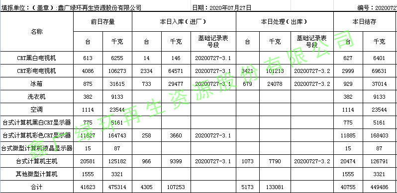 2020.07.27回收拆解統計表