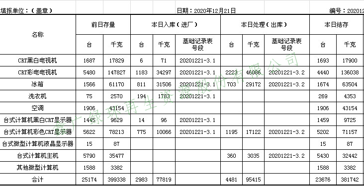 2020.12.21回收拆解統(tǒng)計(jì)表